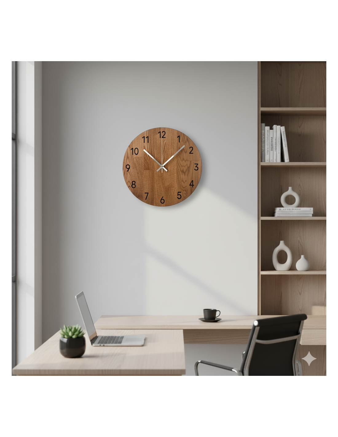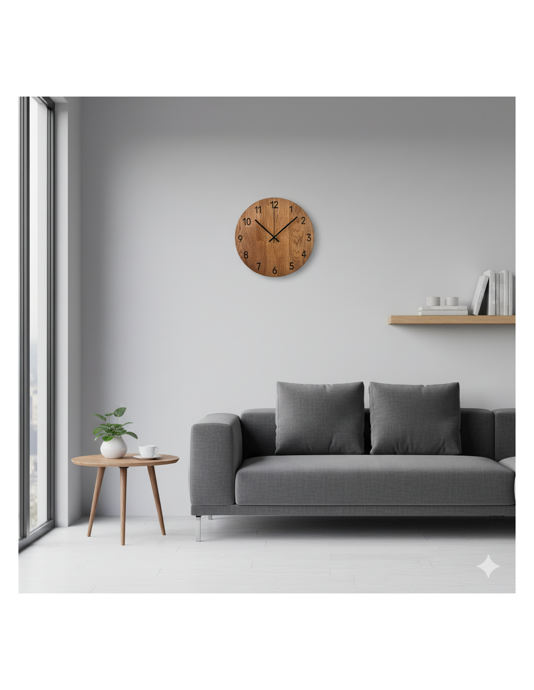- Elegantes Design: Die Kombination aus Eichenholz und Metallzeigern erzeugt einen modernen und dennoch zeitlosen Look.