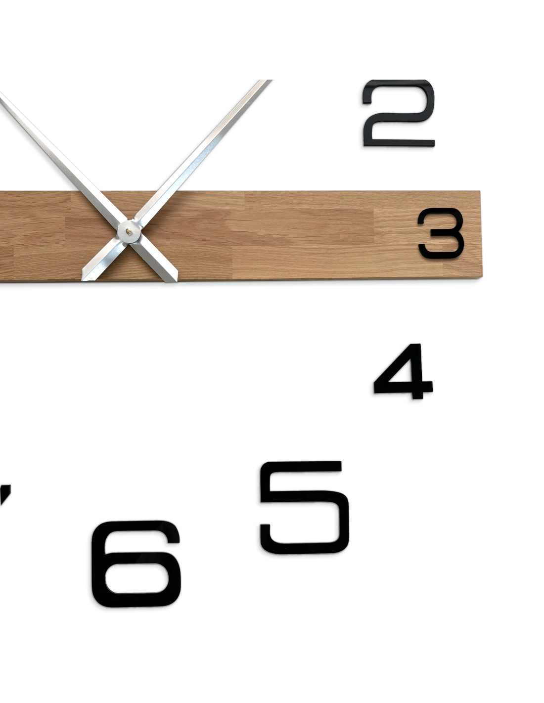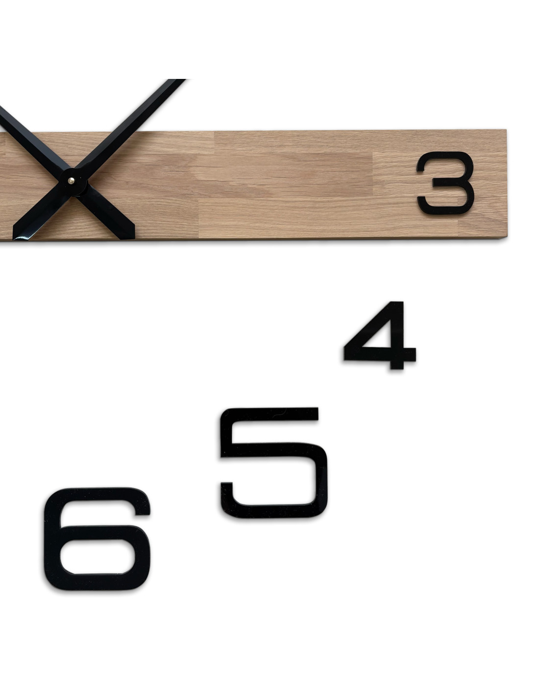 • Plexiglas: Die Größe der Plexiglasziffern bleibt bei beiden Uhrengrößen gleich (die Größe der Ziffer „8“ beträgt 108 x 96 mm), die gesamte Oberfläche der Ziffern ist mit einer Schutzfolie versehen, auf der Rückseite befindet sich