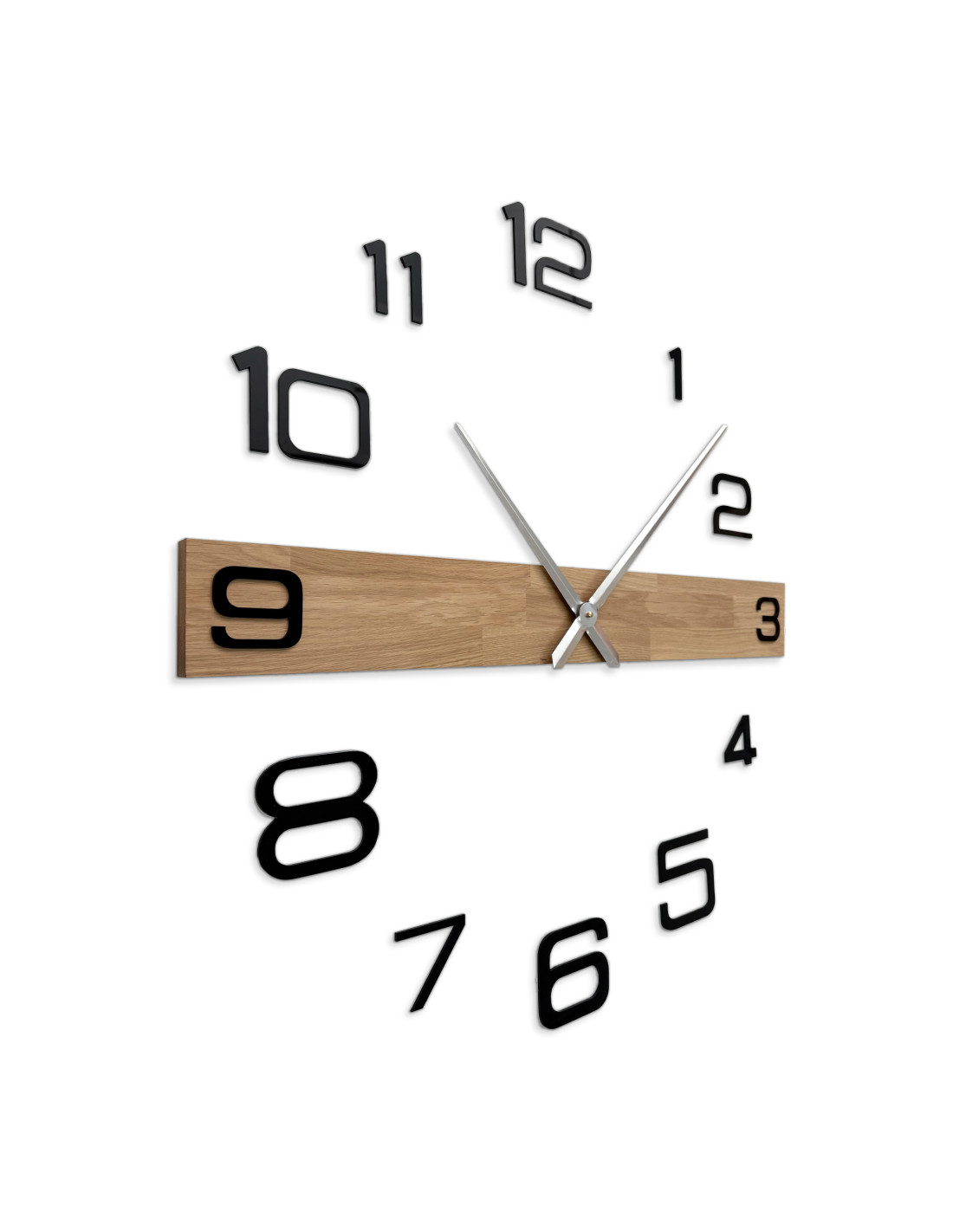 Jede Uhr wird aus massiven Eichenholzplatten hergestellt, die zunächst mithilfe von CNC-Technologie präzise in die gewünschte Form und Größe zugeschnitten werden.