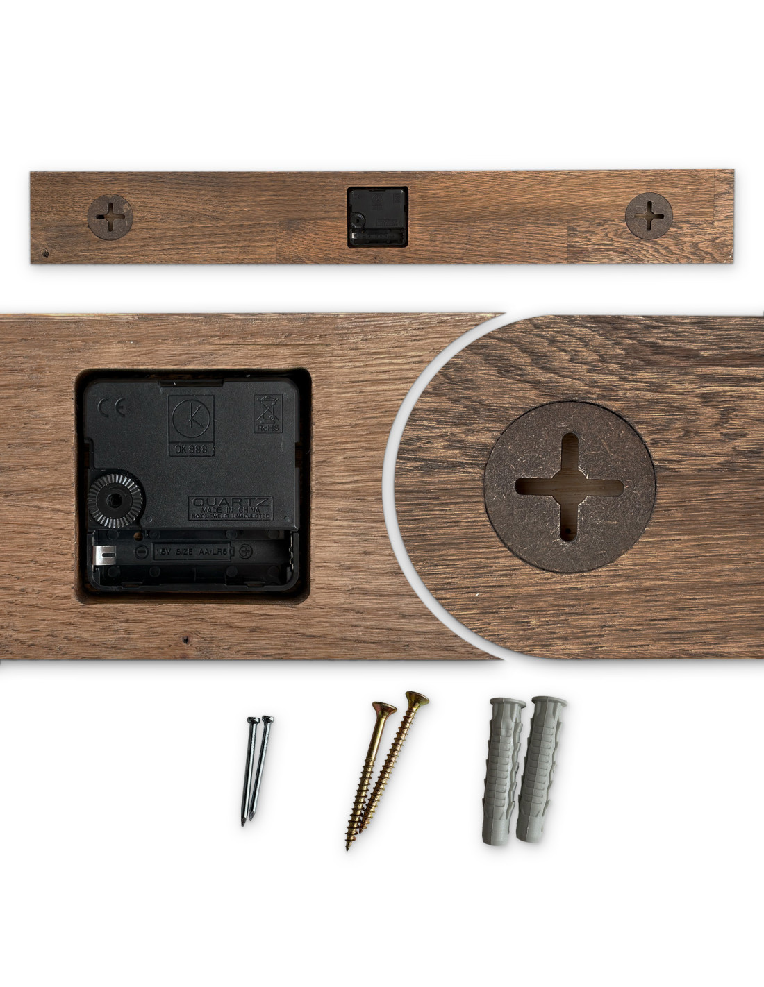 Jede Uhr wird aus massiven Eichenholzplatten gefertigt, die wir mithilfe von CNC-Technologie präzise in die gewünschte Form und Größe schnitzen.