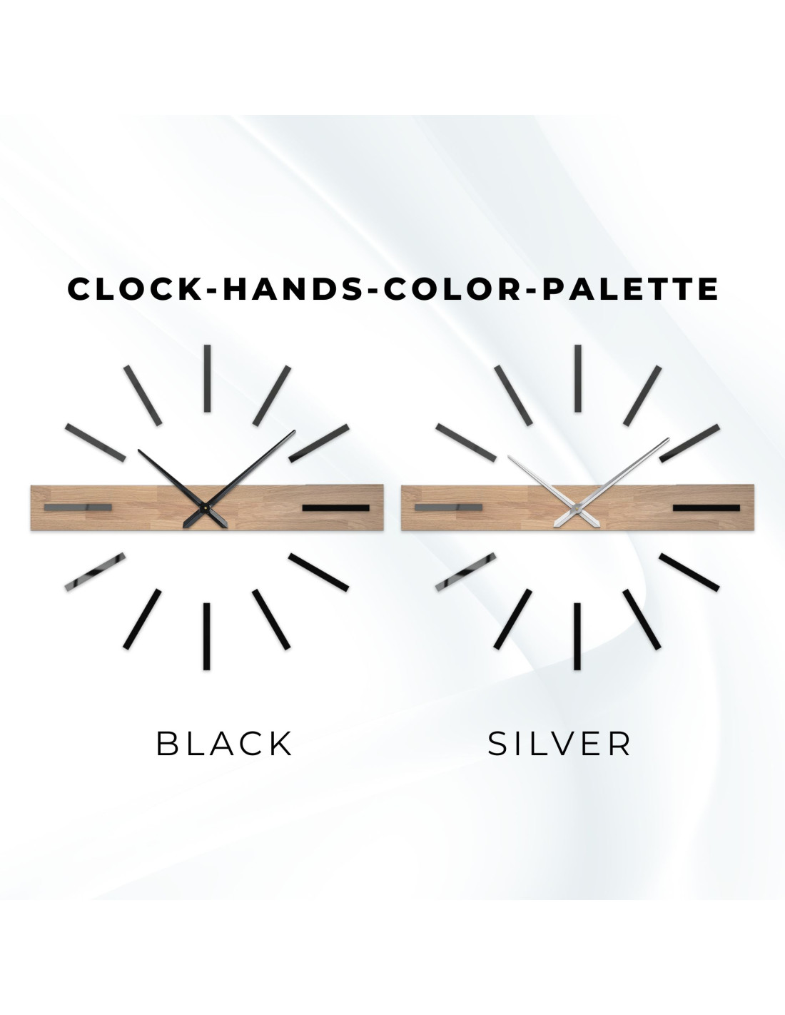 1. Option – Holz / Abmessungen der Uhr: 80 × 10 cm (31,5 × 3,9 Zoll), Gewicht 1 kg (2,2 lb), Durchmesser der Uhr 80 cm (31,5 Zoll)