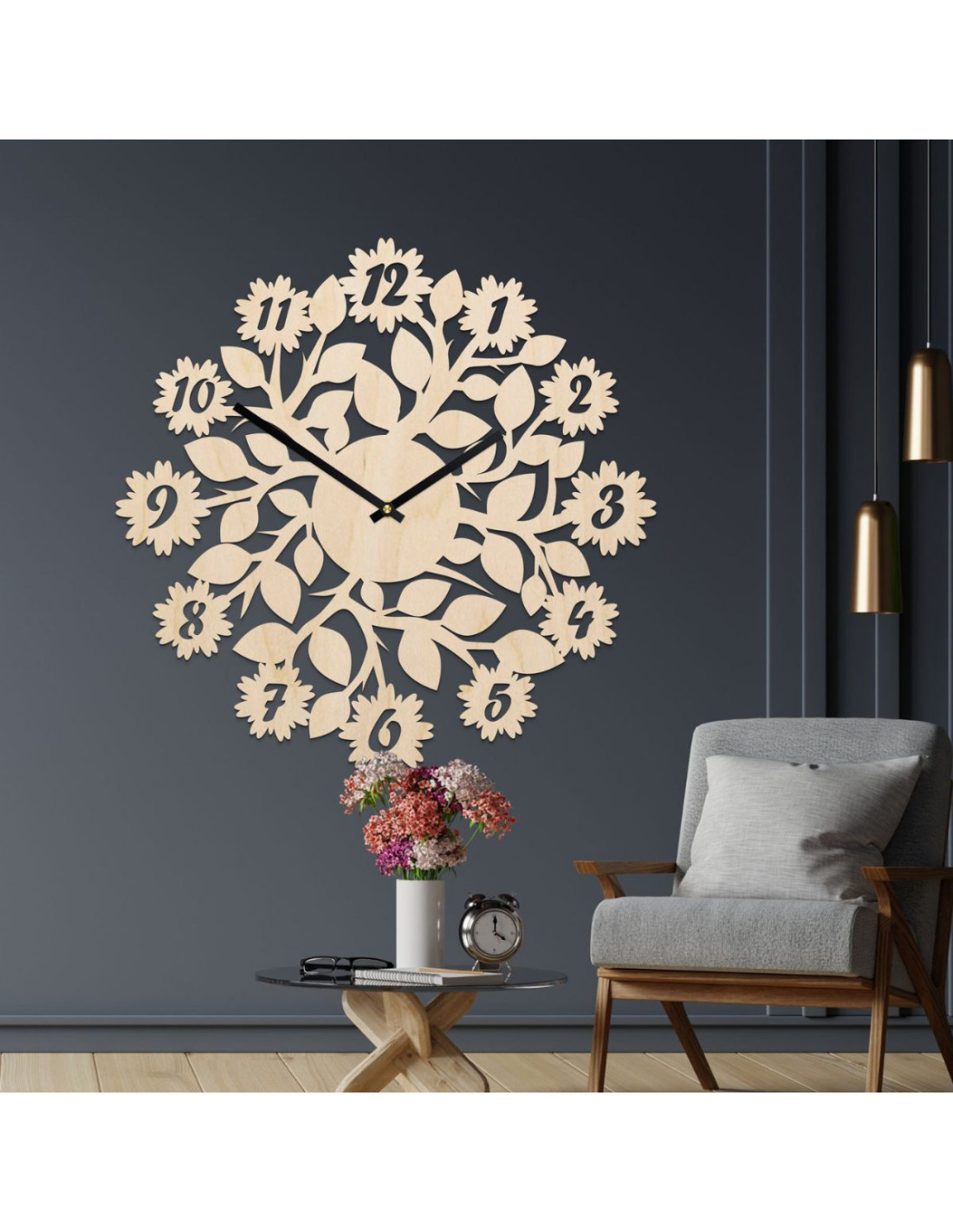 Originale Uhr mit Zahlen und Blumen | DVANAS