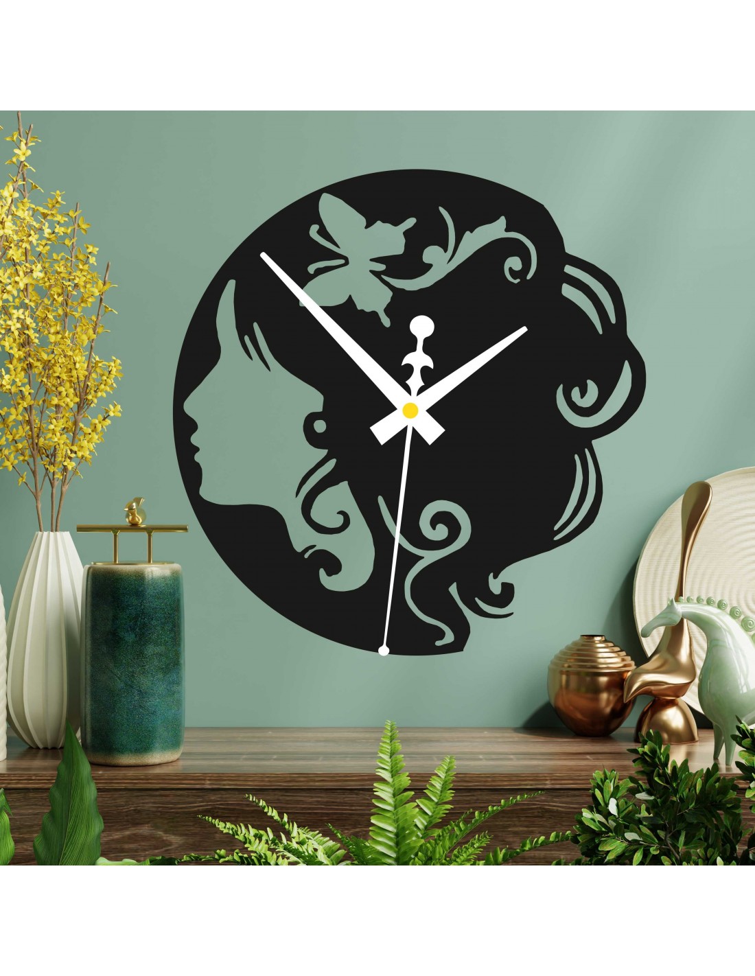 Holzuhr - Dame mit Schmetterling im Haar schwarz und farbig | SENTOP PR0399