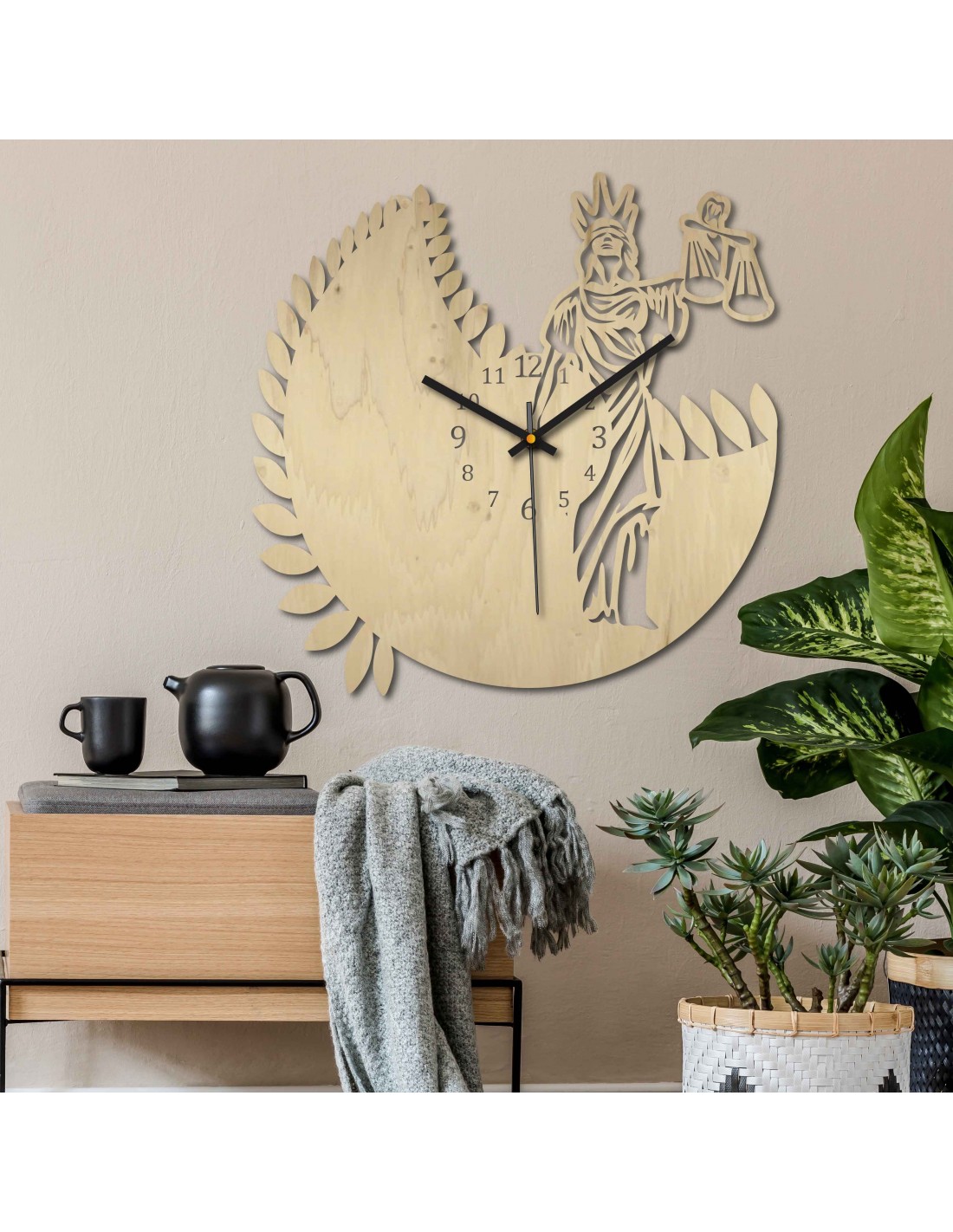 Die Uhr ist aus Sperrholz gefertigt und mit farblosem Lack behandelt. Dadurch behält sie lange ihr natürliches Aussehen . Der Holzduft weckt Kindheitserinnerungen und die Uhr verleiht Ihrem Zuhause Stil .