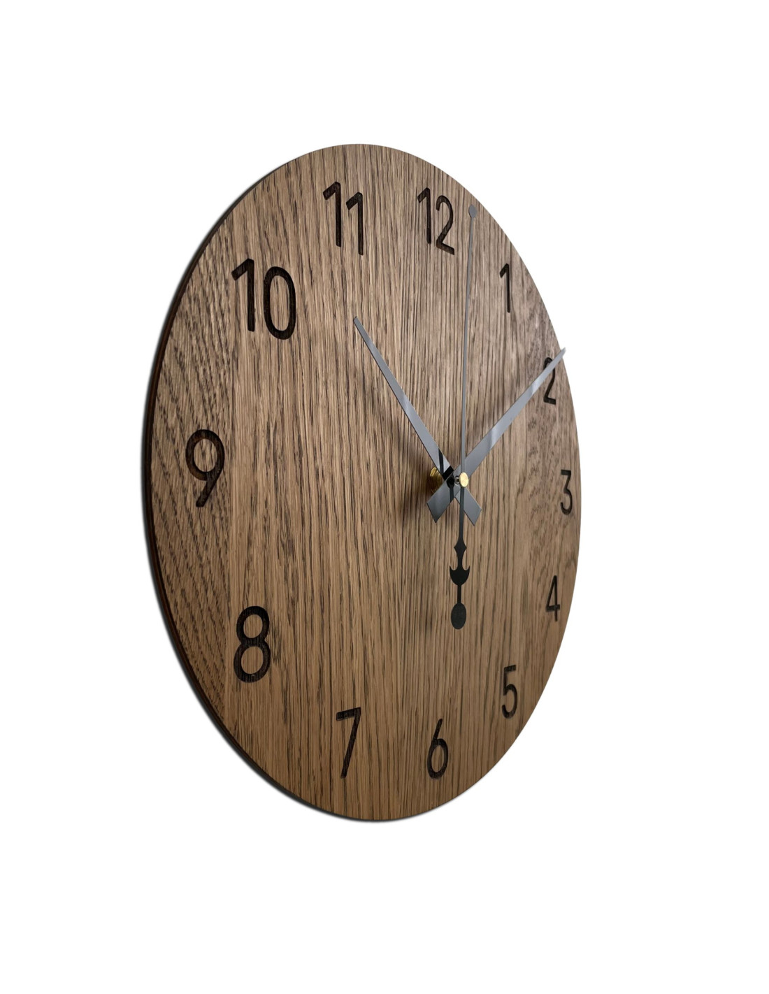 Wanduhr aus Eichenholz – geräuschloser Quarz, modernes Design – DOBLE