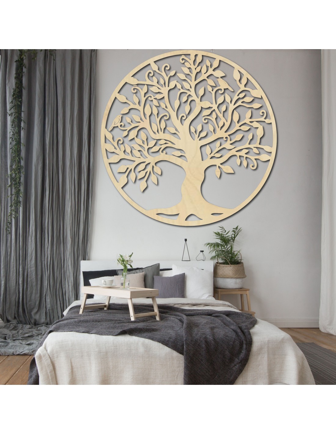 Wandgemälde aus Holz – Der Baum des Lebens symbolisiert Wachstum , Erneuerung und Verbindung mit der Natur.