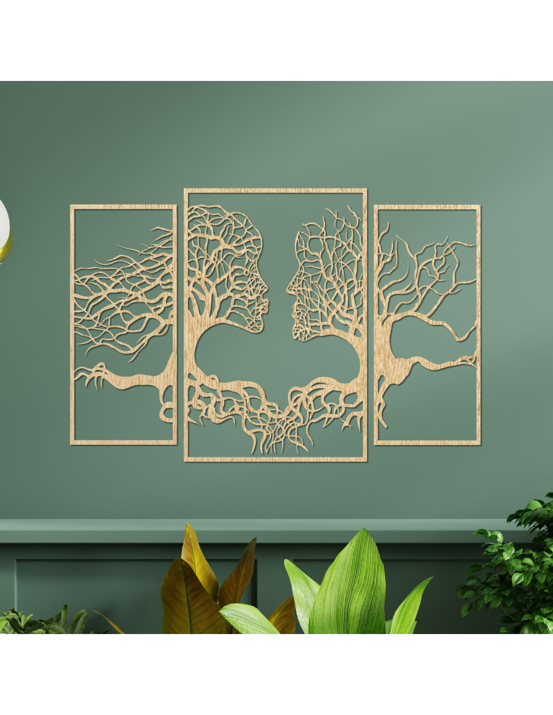 SentopAbstrakte Kunst mit ineinander verschlungenen Gesichtern aus Ästen , die Verbundenheit und Einheit symbolisieren. Ein dreiteiliges Design mit starkem Kontrast auf weißem Hintergrund, das Wachstum und Vernetzung thematisiert. Ideal als Wanddekoration , die jeden Raum belebt und ihm eine künstlerische Note verleiht.