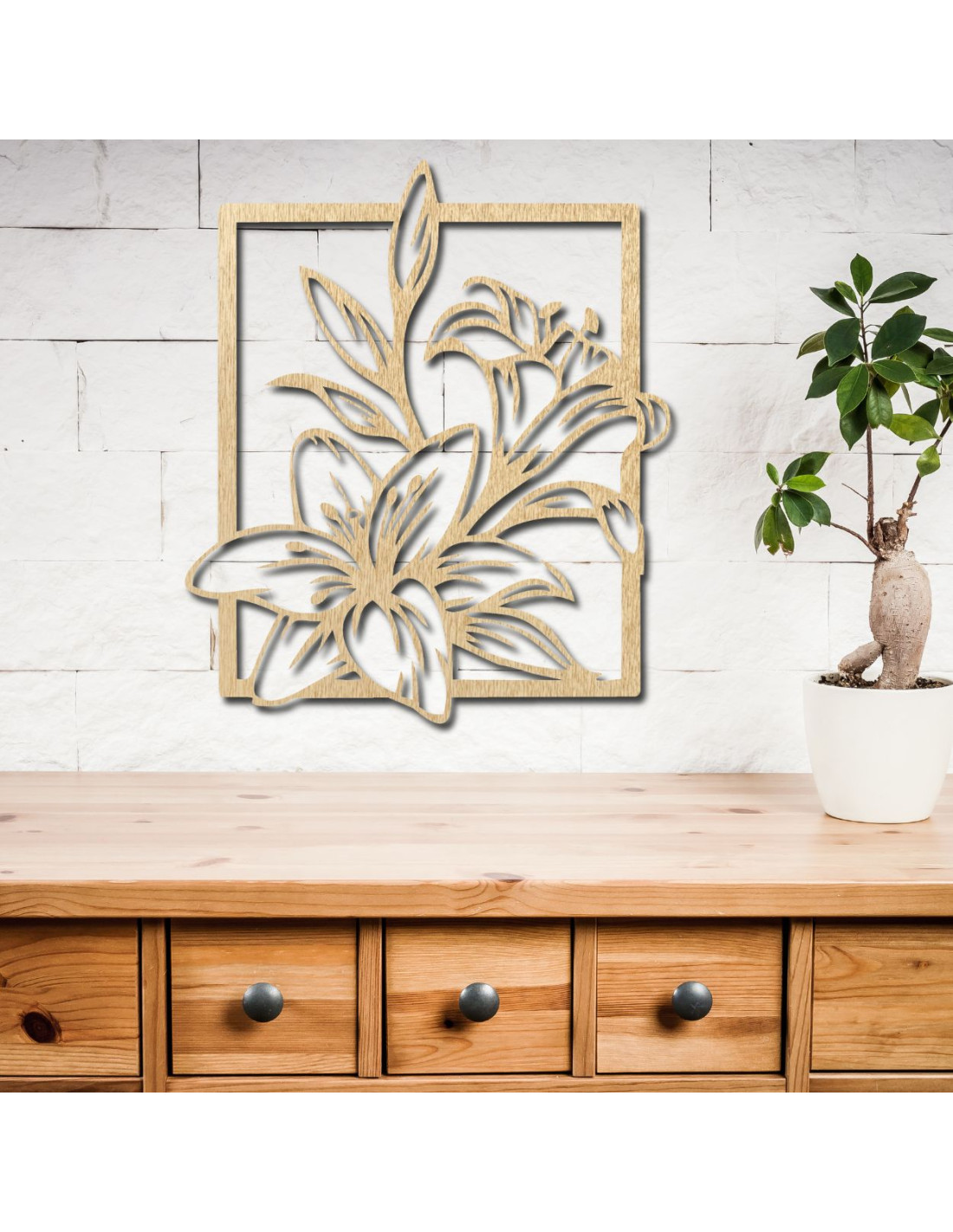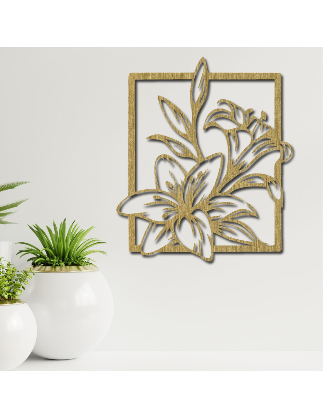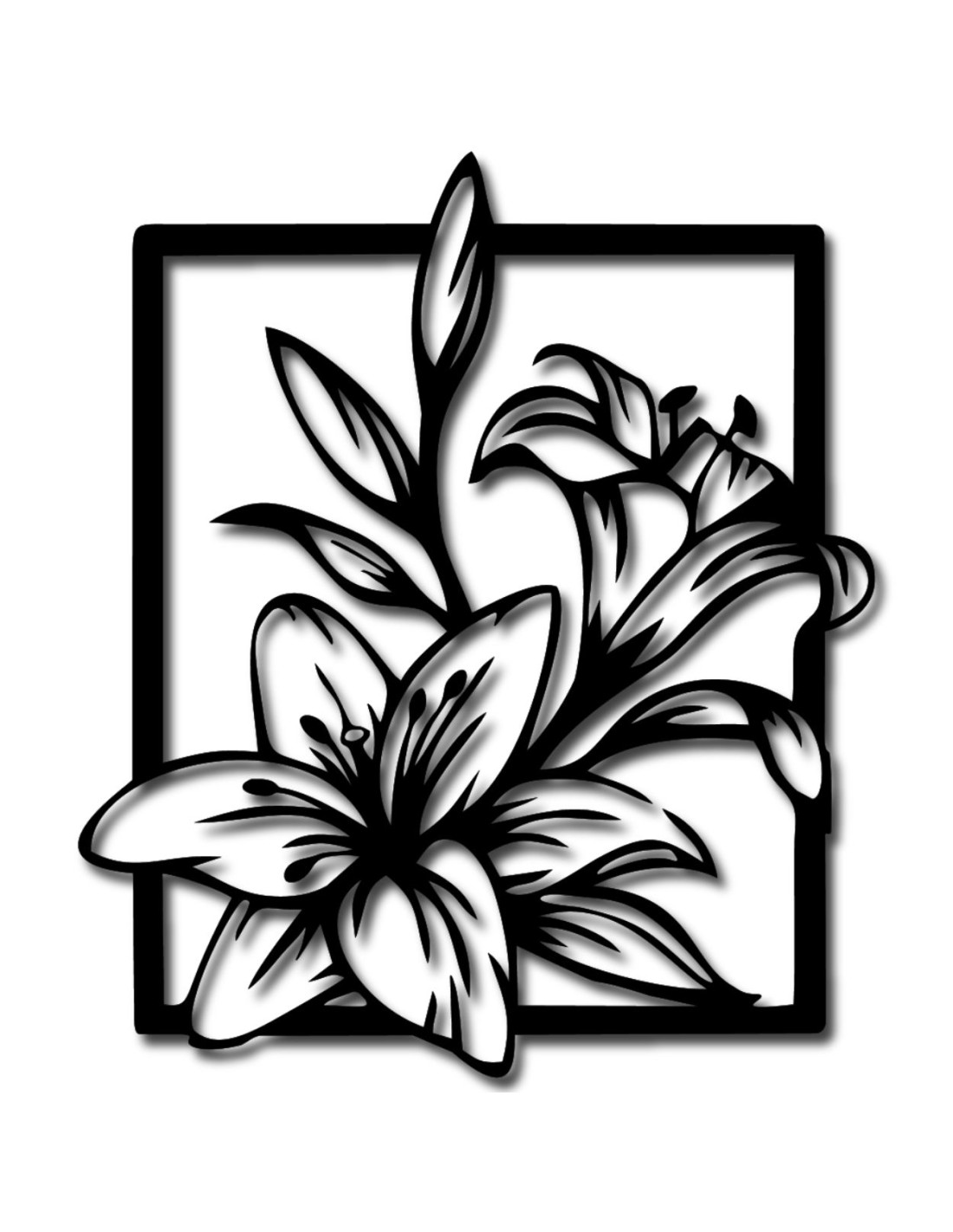 Ein Gemälde mit einem floralen Lilienmotiv, dargestellt in einem einfachen Design mit quadratischem Rahmen.