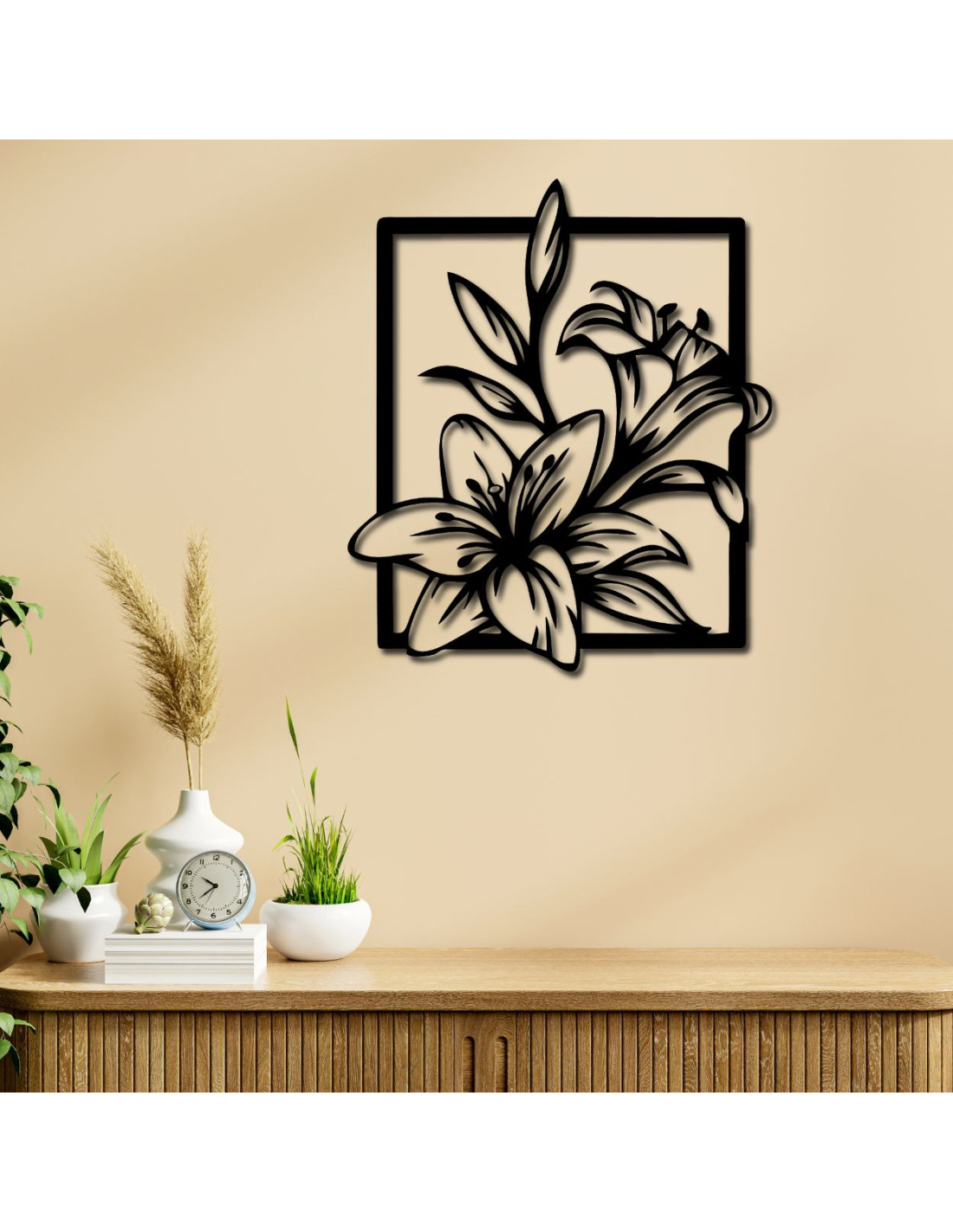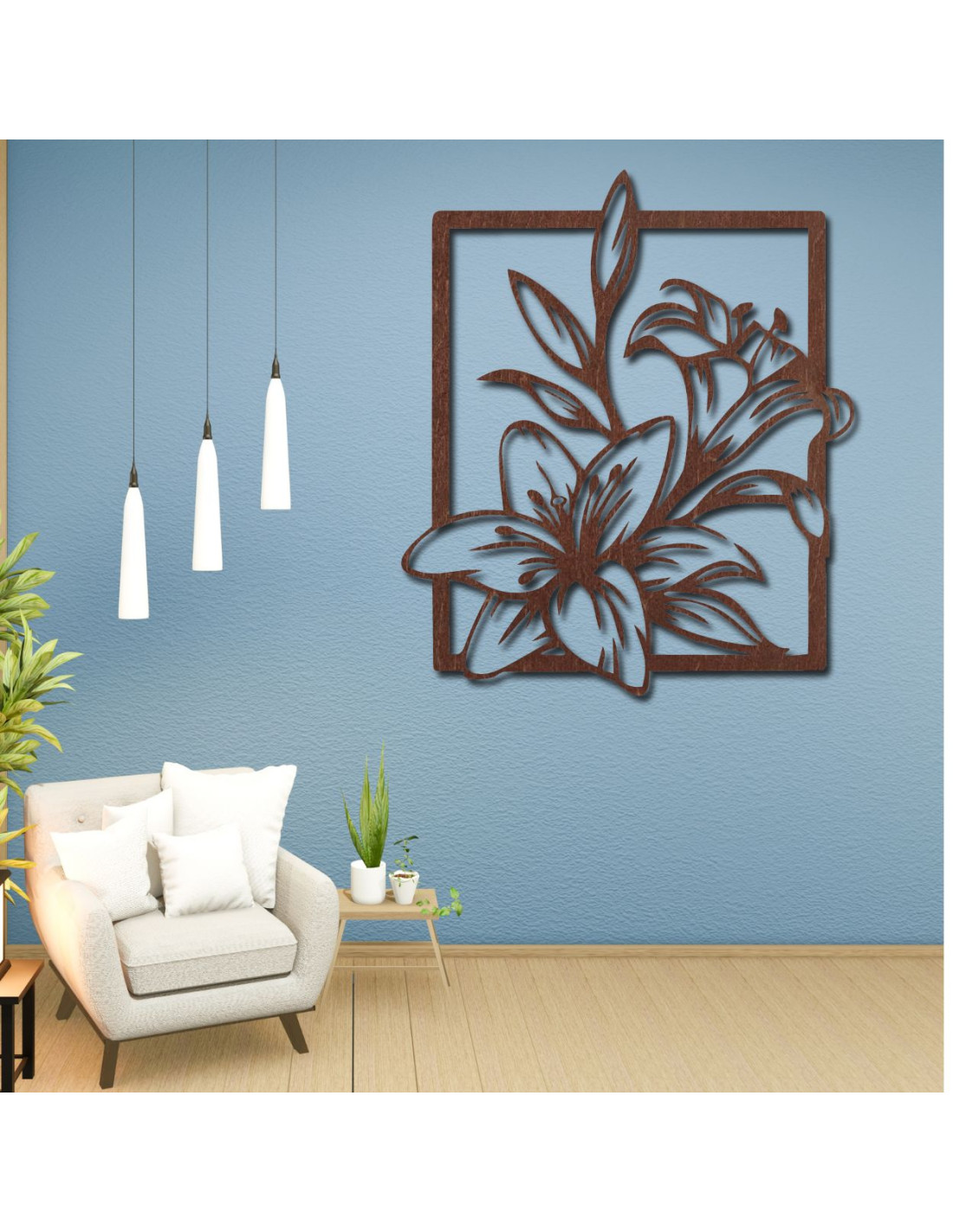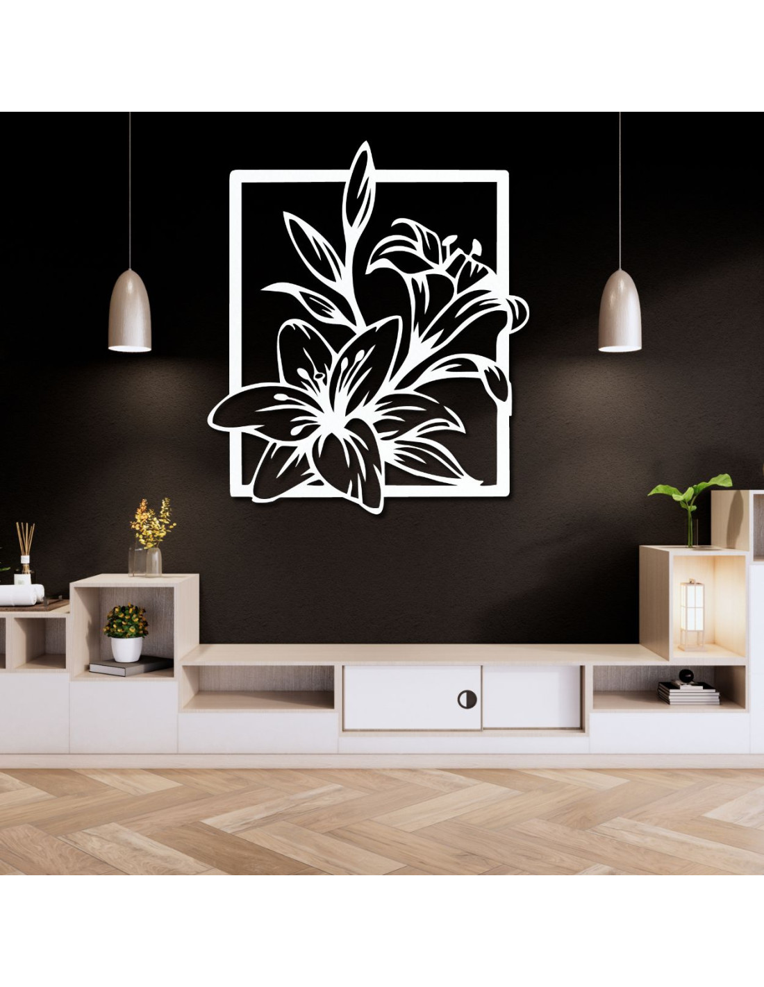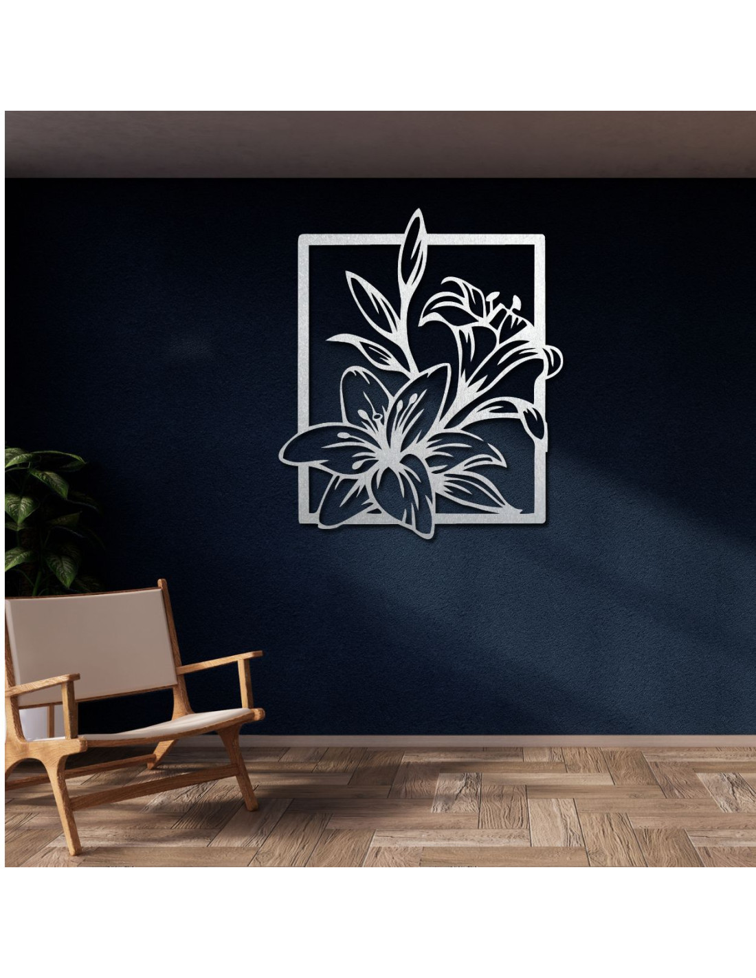 Ein Gemälde mit einem floralen Lilienmotiv, dargestellt in einem einfachen Design mit quadratischem Rahmen.