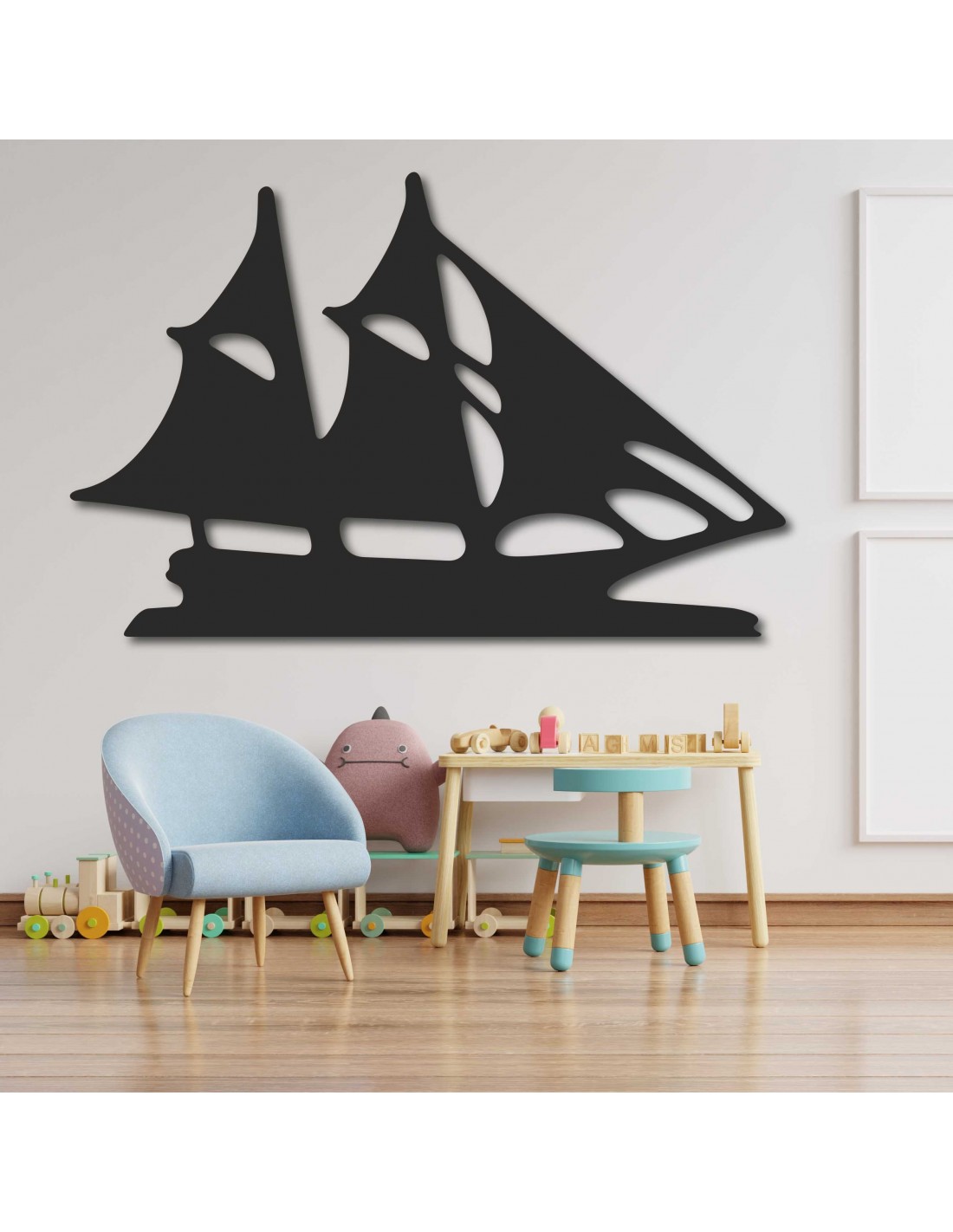 Das minimalistische und doch einzigartige Design des Segelboots verleiht dem Raum eine frische Note und ruft friedliche Gefühle hervor, die mit Horizont, Ferne und Freiheit verbunden sind.