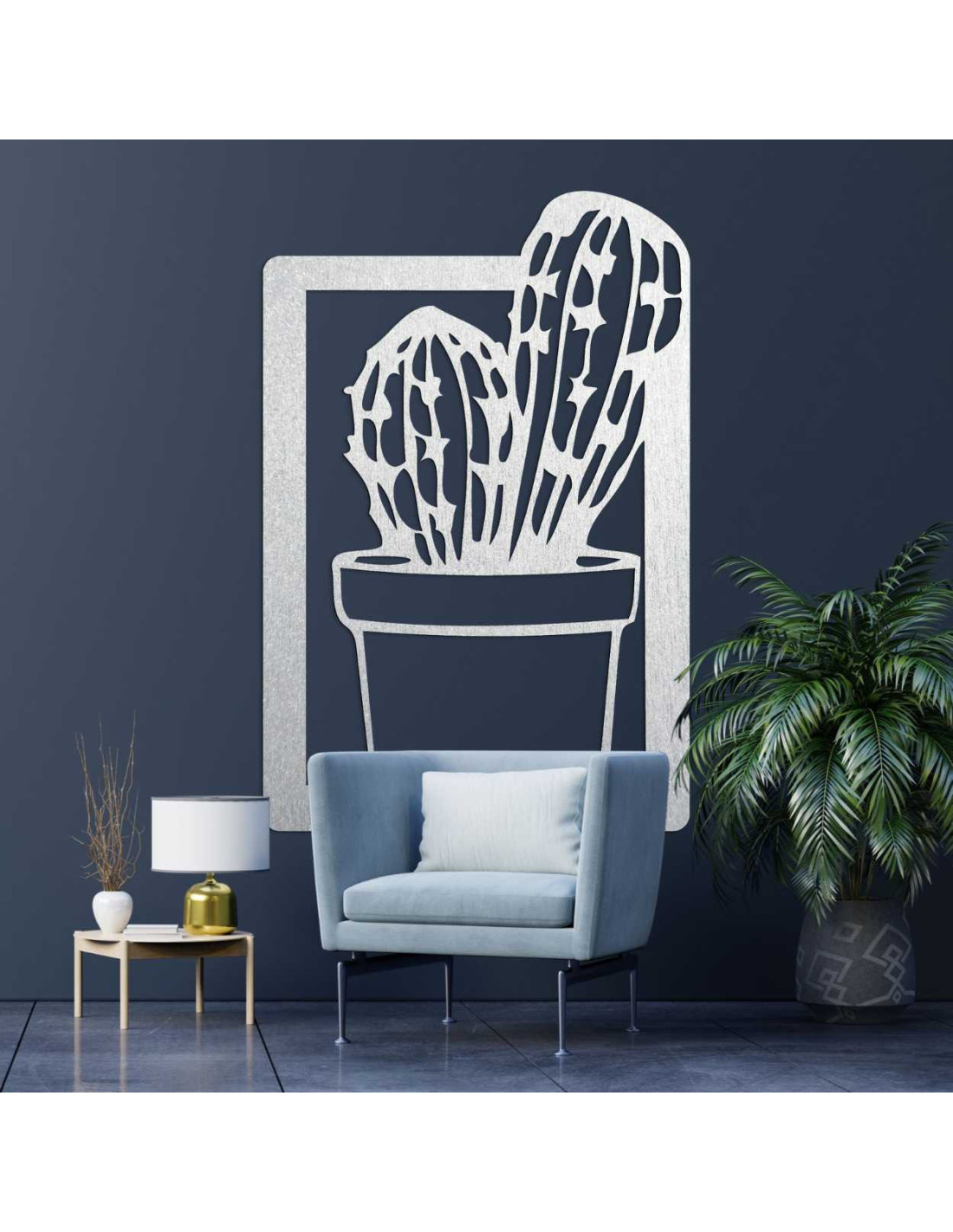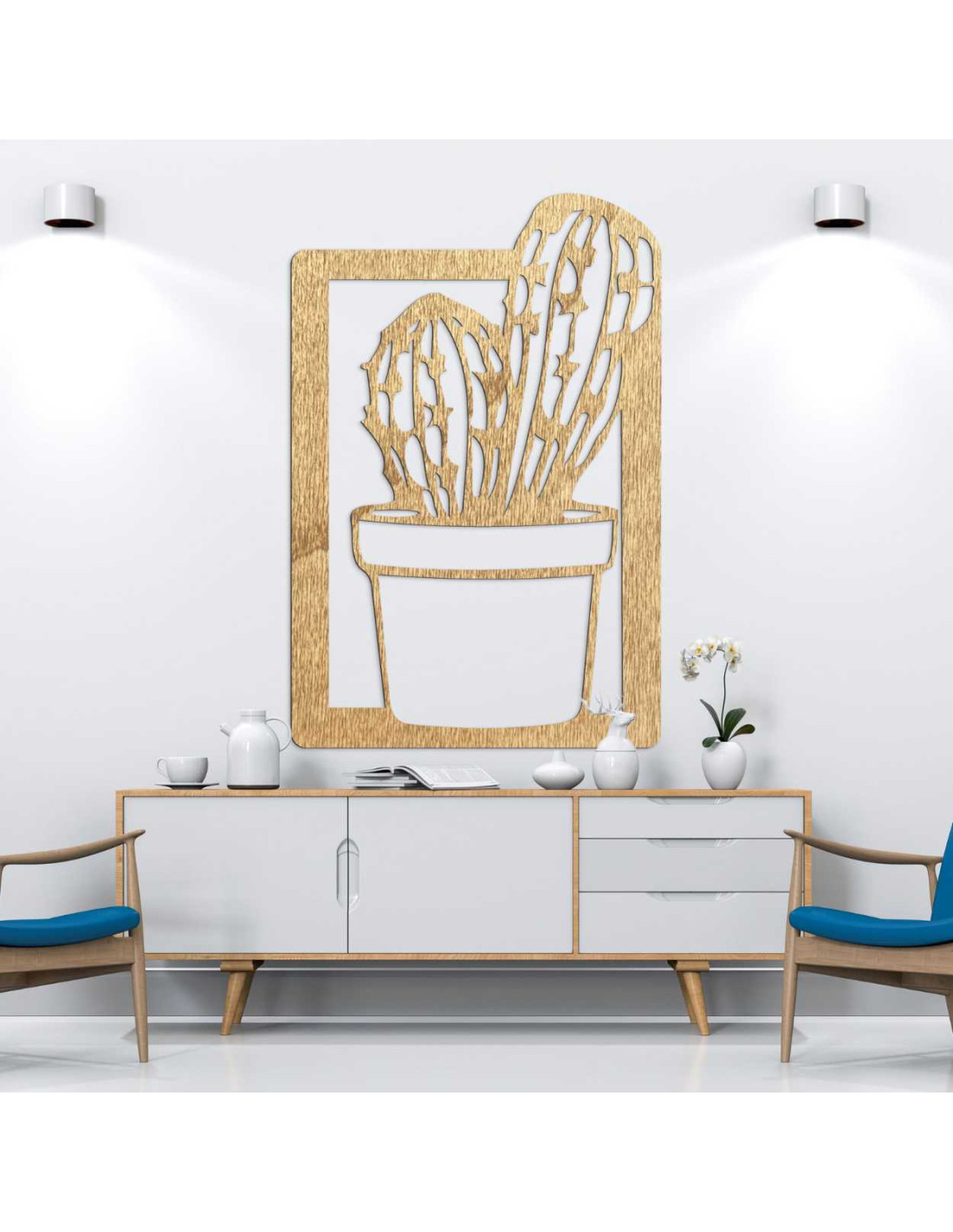 Moderne Wanddekoration für das Wohnzimmer mit Holzrahmen und natürlichem Kaktusmotiv.