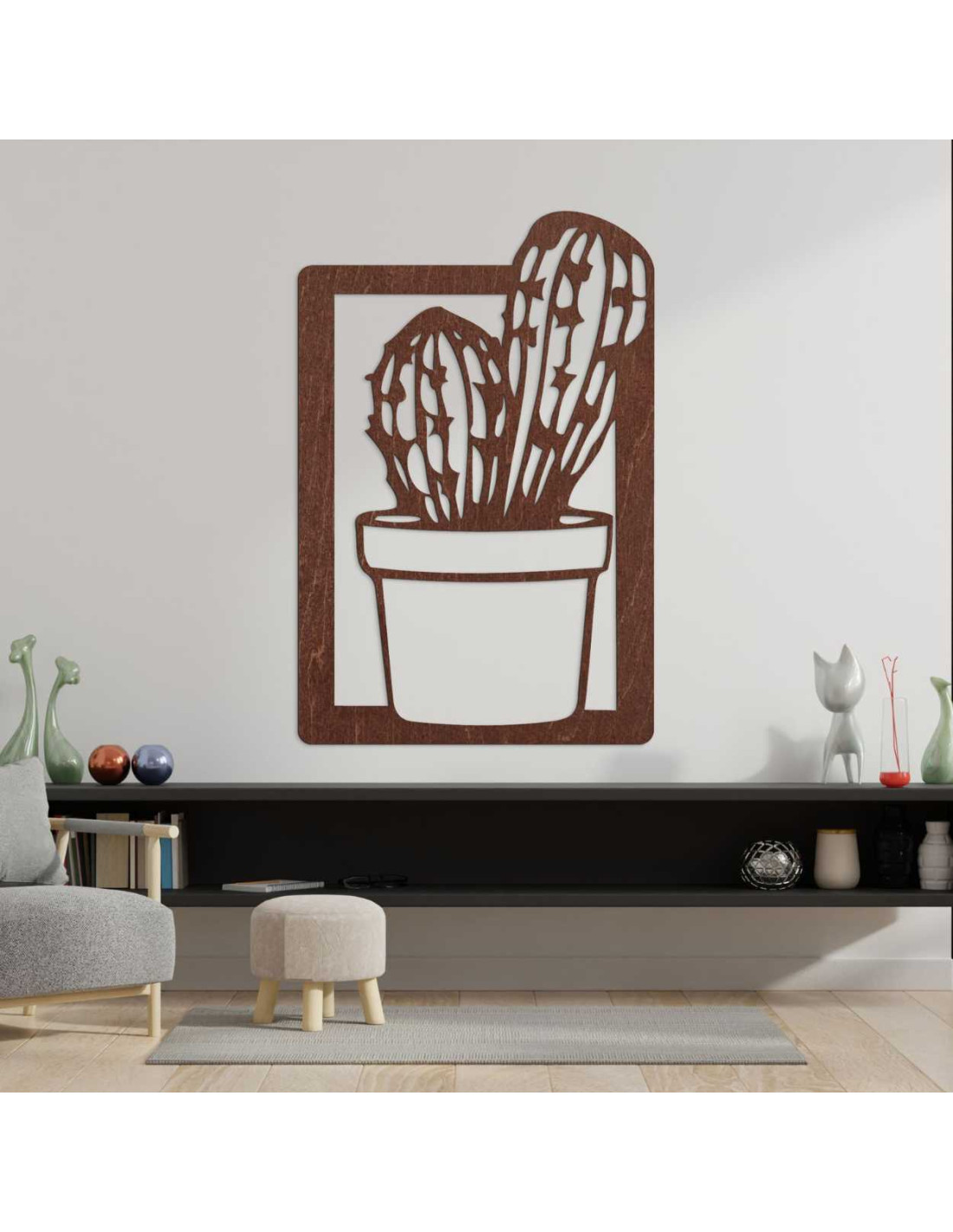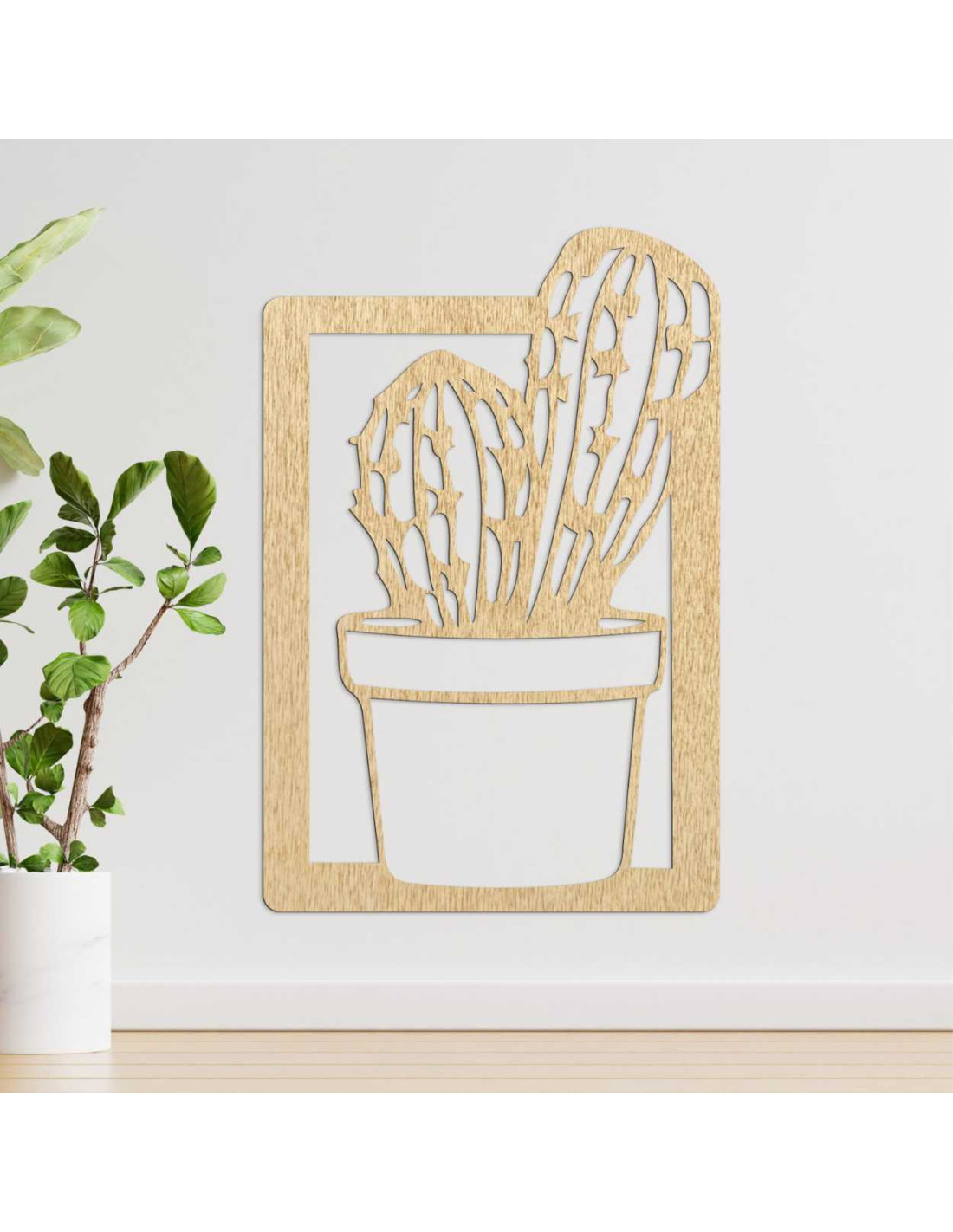 Stilvolles Wandpaneel aus Holz mit einem Kaktus, geeignet für das Wohnzimmer oder das Büro.