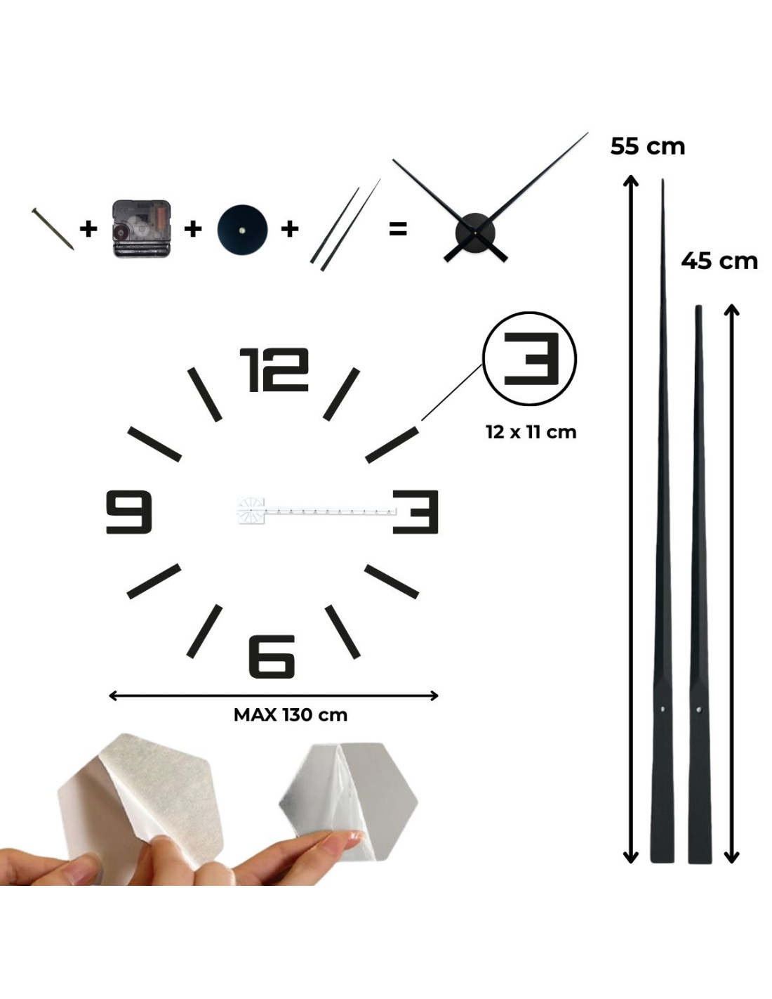 - Uhrdurchmesser 130 cm - längere Zeiger aus gleichem Material für mehr Platz.