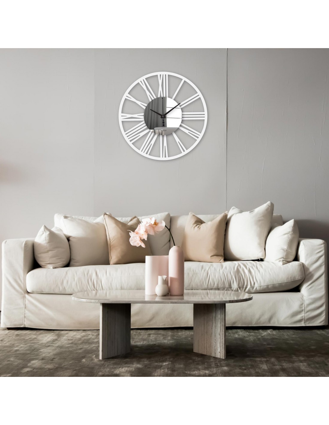 - Modernes Design – kontrastierende schwarze römische Ziffern und eine verspiegelte Mitte für einen luxuriösen Effekt.